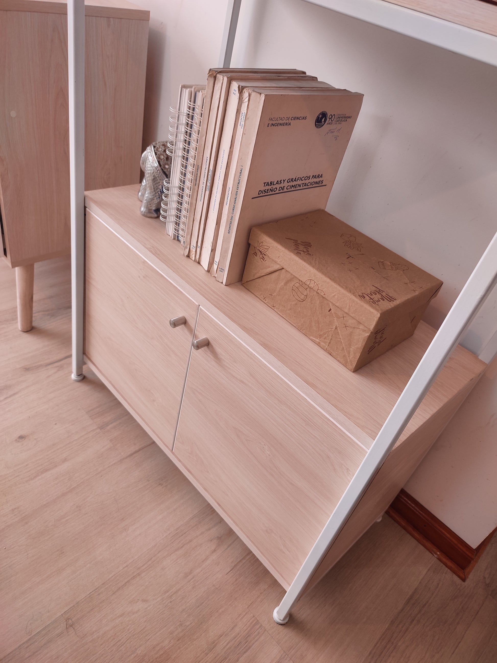 Estantería y cajonera: Melamina de 18mm color Acacia (tono de madera clara)